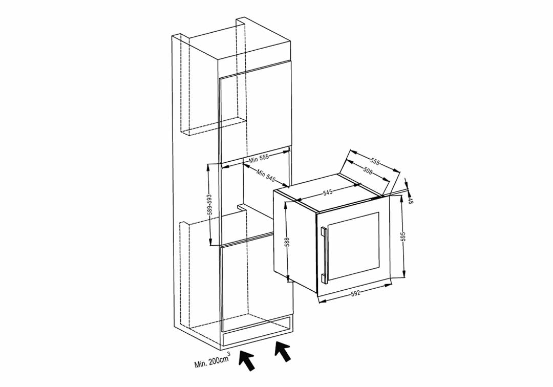 Product dimensions (595mm*592mm*555mm)