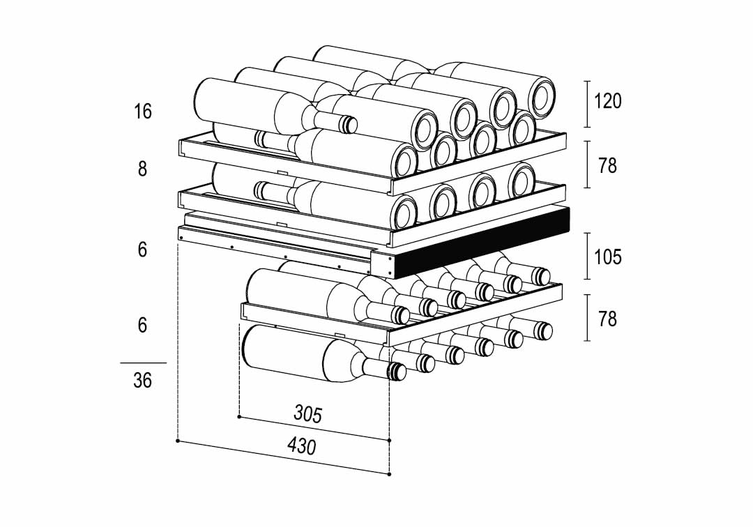 Capacity for 36 bottles (standard 750mm Bordeaux bottle size)